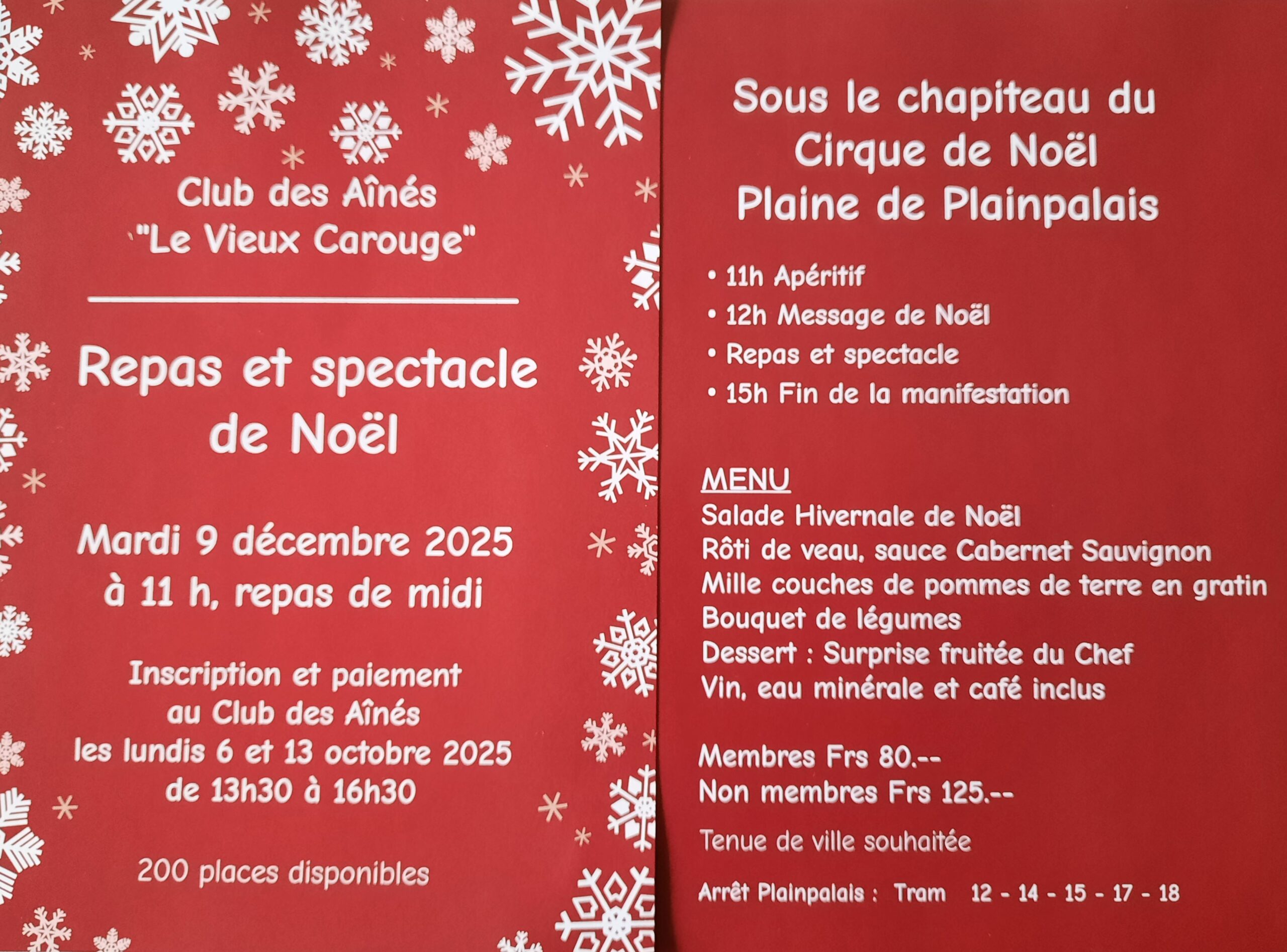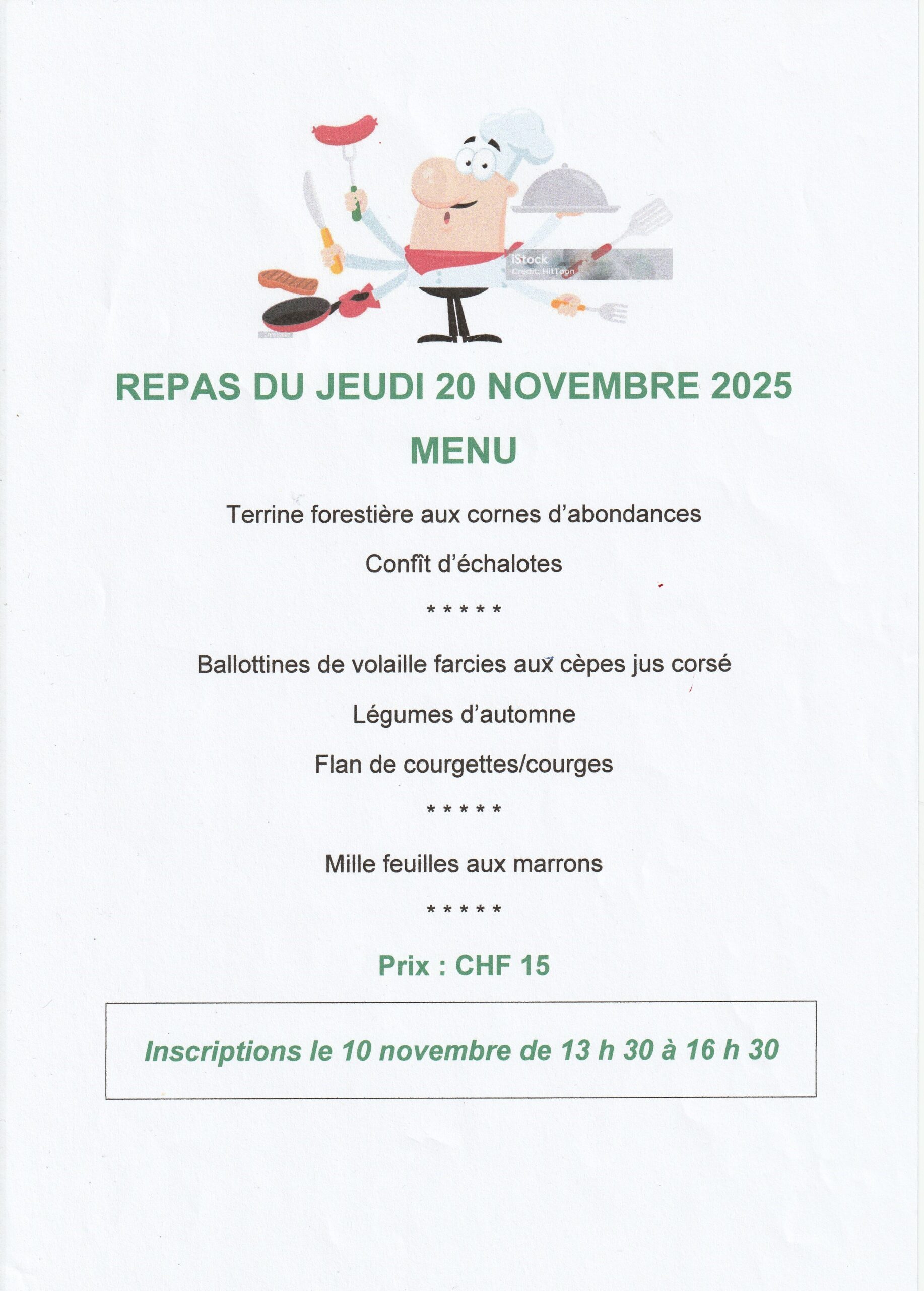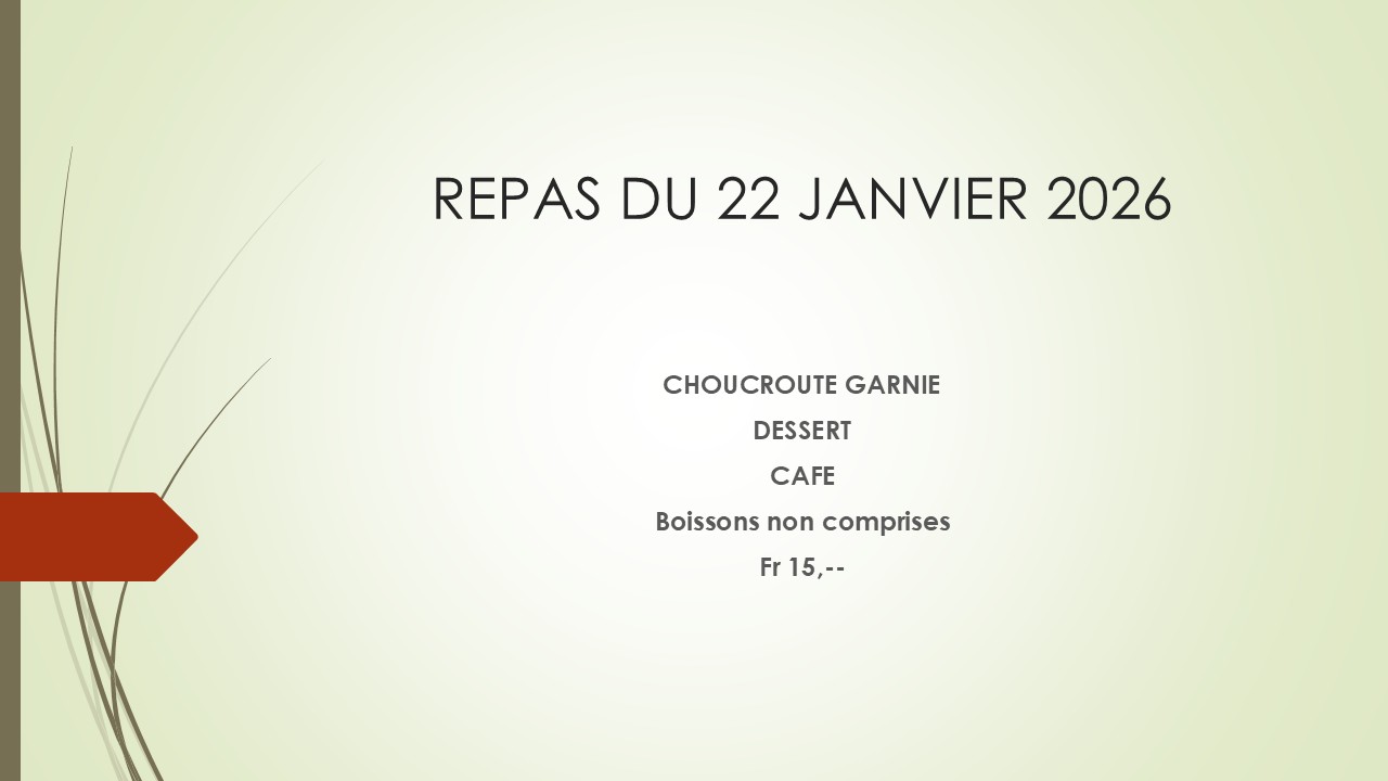 Une fois par mois, le Club des Aînés vous propose un repas généralement le jeudi à midi.